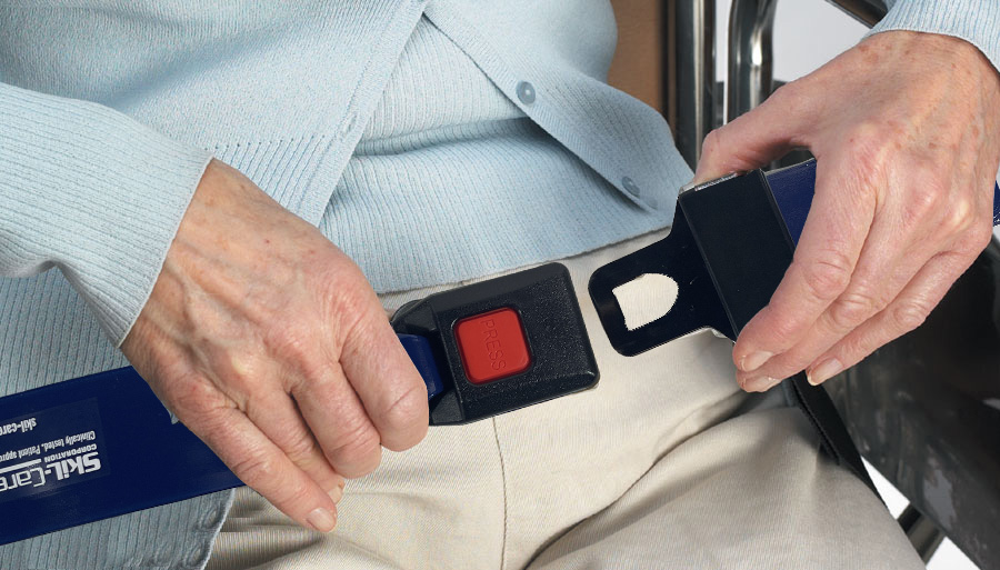 • Buckle-activated alarm sensor alerts caregivers if the belt is released.